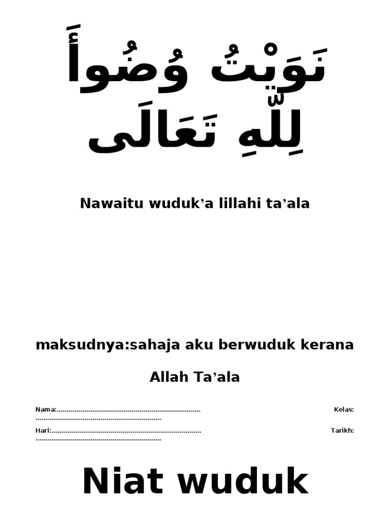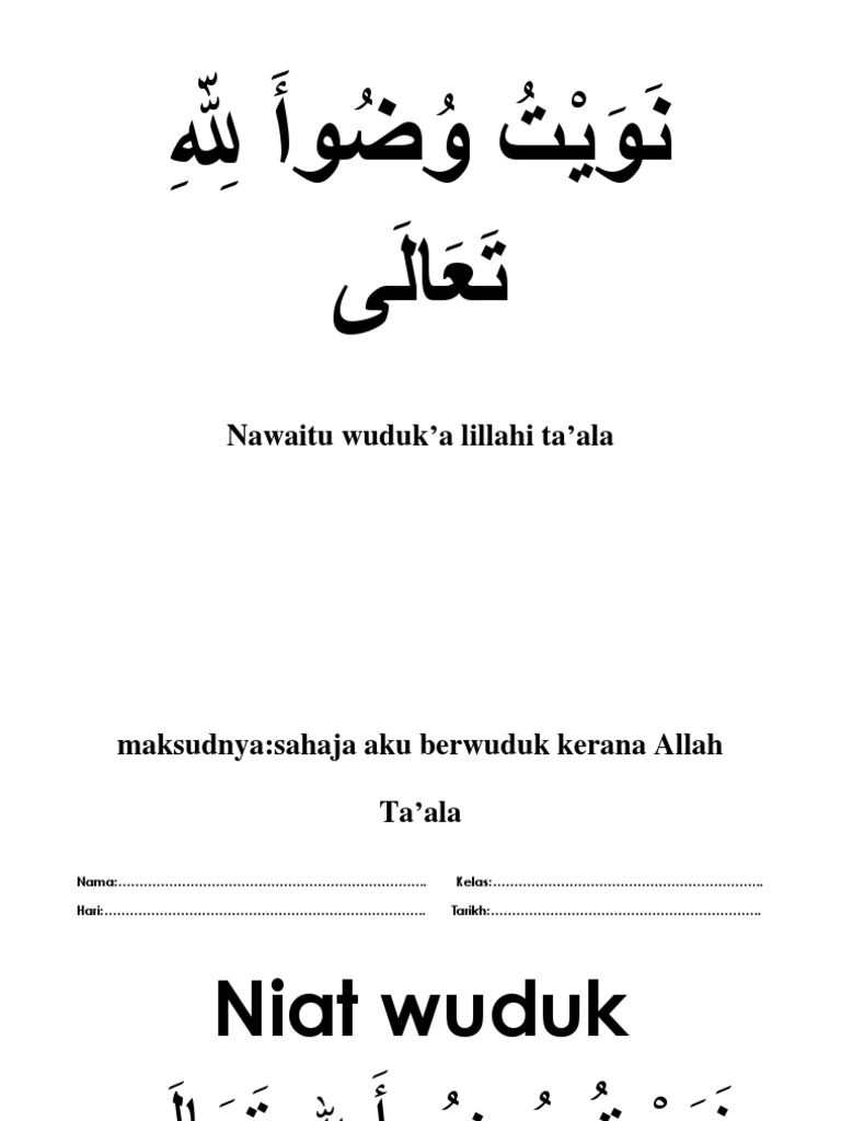 Nawaitu Wudhu A Lirafil Hadatsil. Sections of this page. Saya niat puasa Tarwiyah sunnah karena Allah taala.